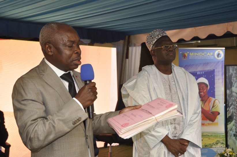 Remise solennelle des lots des titres fonciers appartenant aux acquéreurs de la SIC par le SG / MINDCAF, représentant de S.E Henri Eyebe Ayissi |
